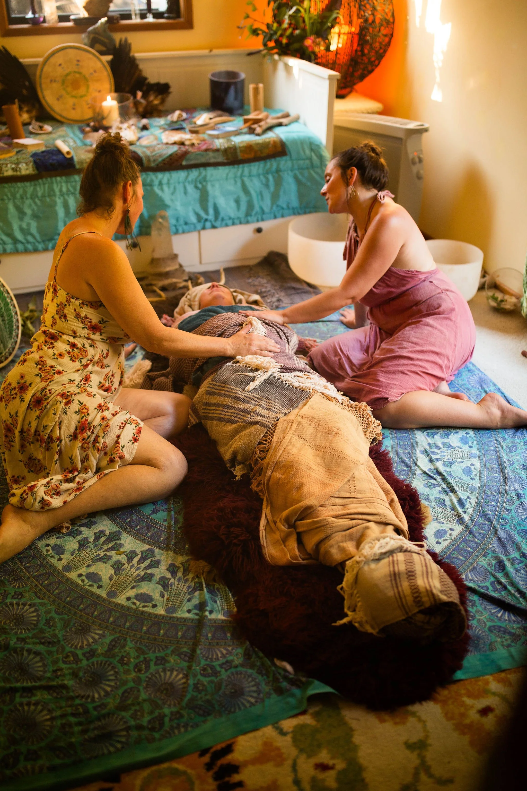 Ritual is my mother tongue. I’m devoted to women, to womb wisdom, and to the holy ordinary—birthdays and babies, grief and goodbyes, beginnings and becoming. I love weaving story, song and the elements into spaces where you feel deeply seen, held and celebrated. Whether we’re crafting a personal rite, resting in sound, or tending body and spirit on the table, my intention is always the same: to nourish your infinite potential and awaken the medicine within.