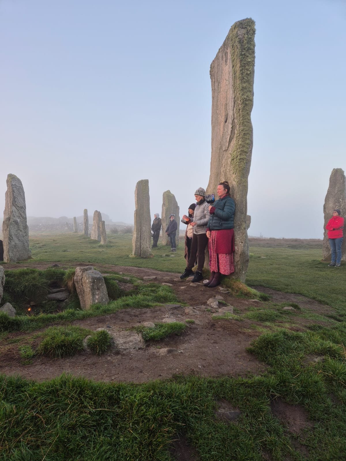 A year ago, on the Isle of Lewis, after singing the Sun up through the Misty veils of Calanias Stone Circle on the Autumn Equinox ~ I lit a peat fire under the stars between two graveyards on a Beach of ancient stones and Craggy cliffs ~